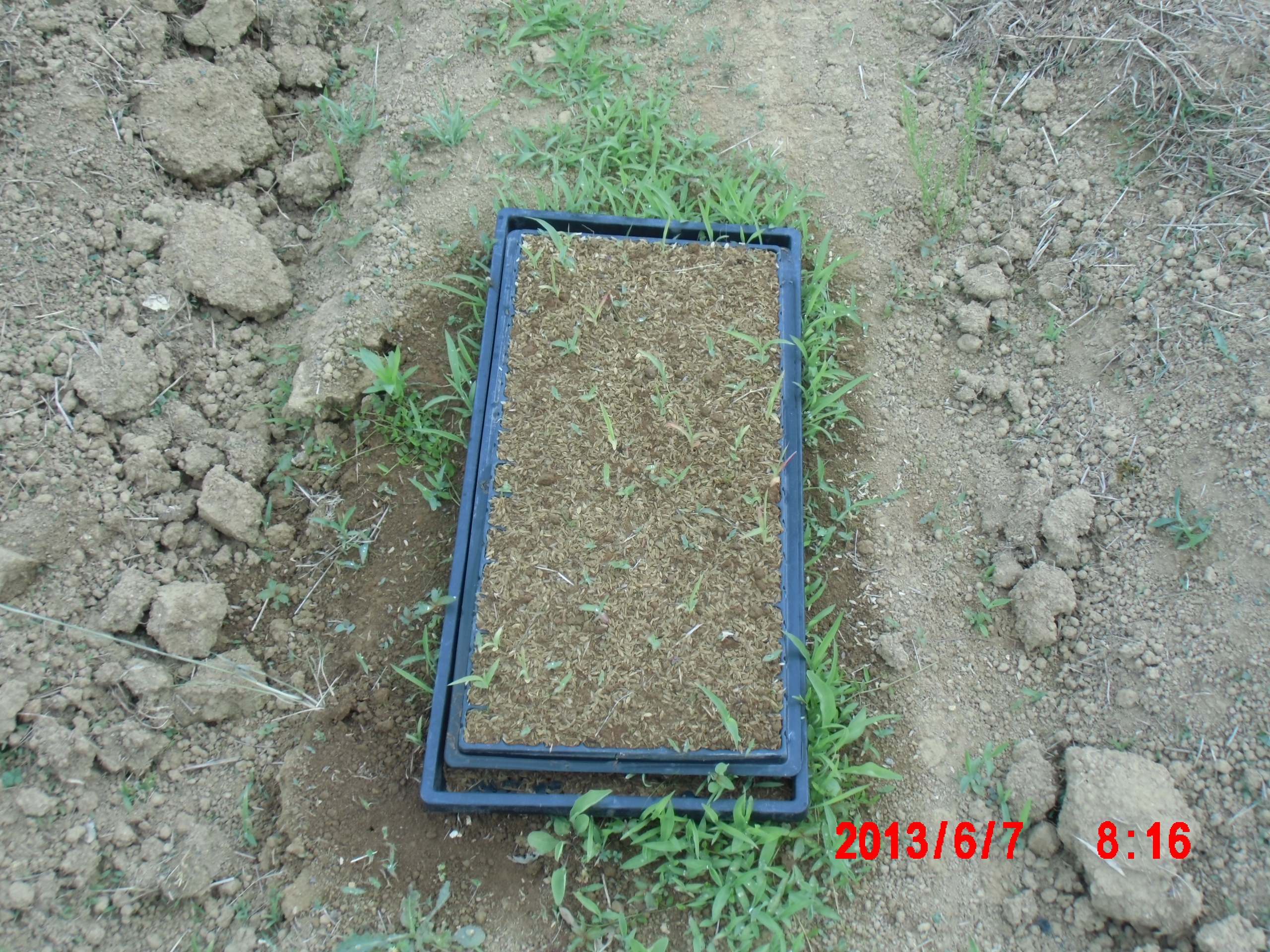 メートルソルゴーは一番上の休耕田の2つの畝に障壁も兼ねて直播きしました。