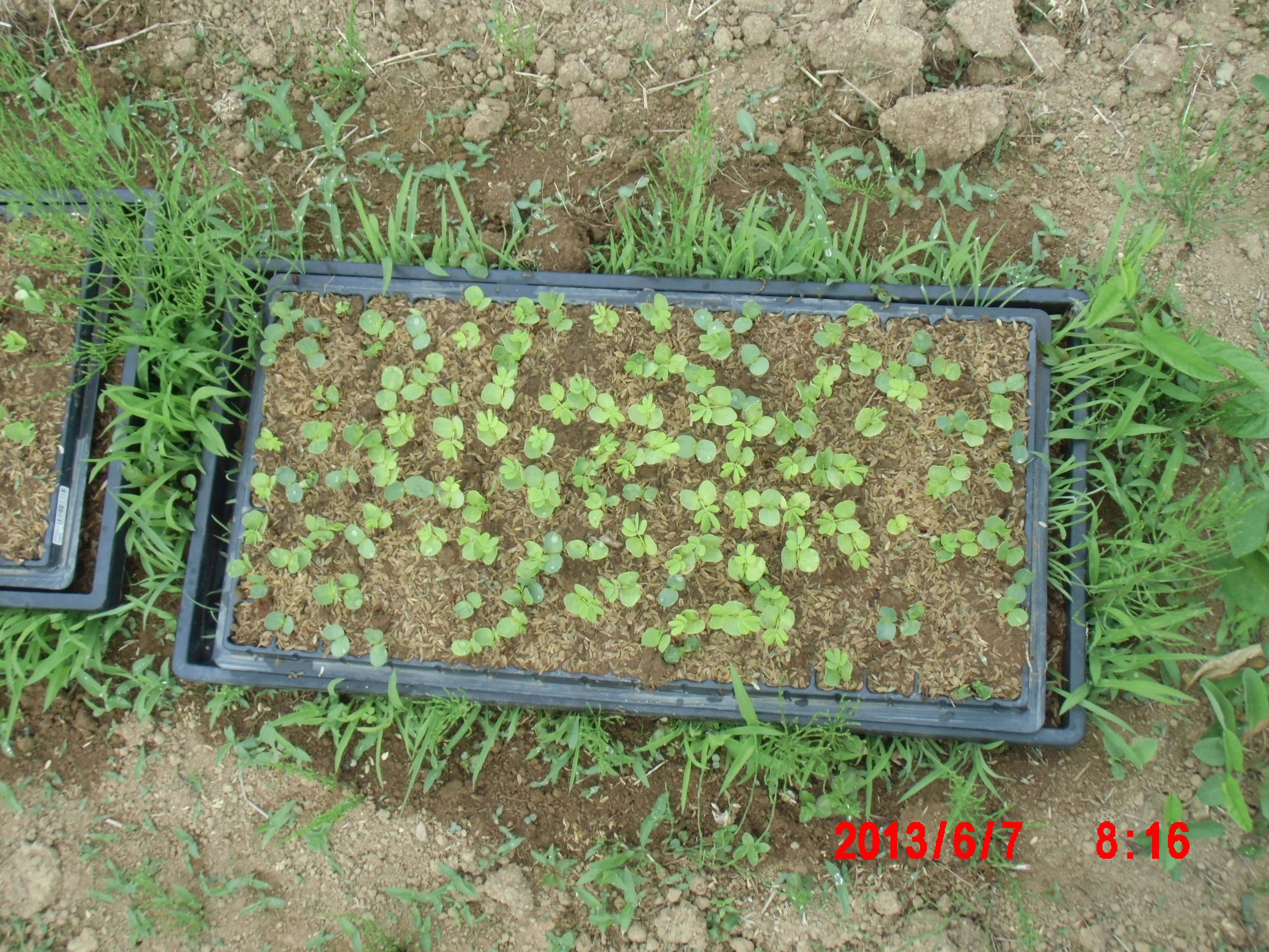 育苗トレイの苗も大きいものだけアピオスの支柱になるように定植しましたが