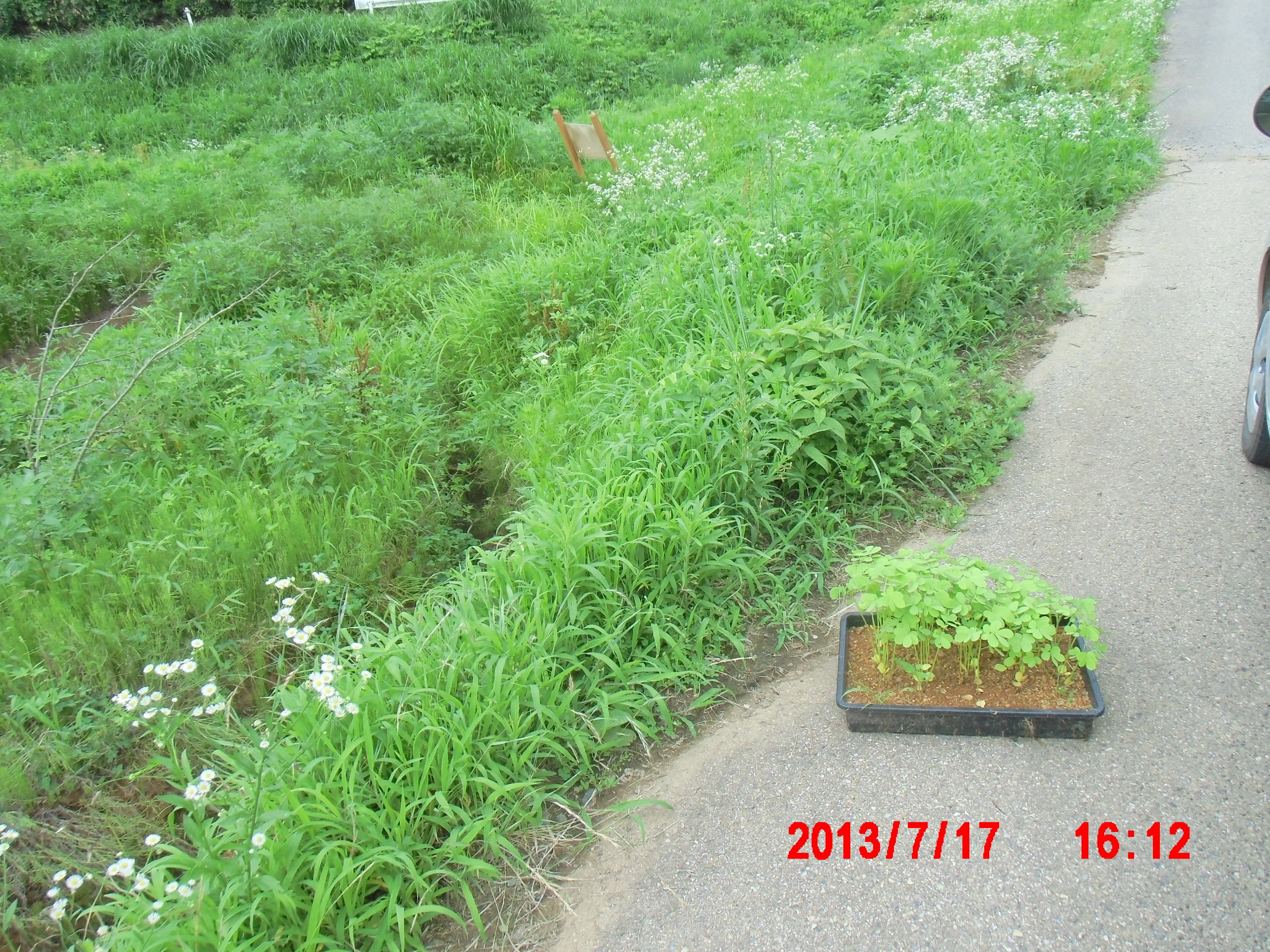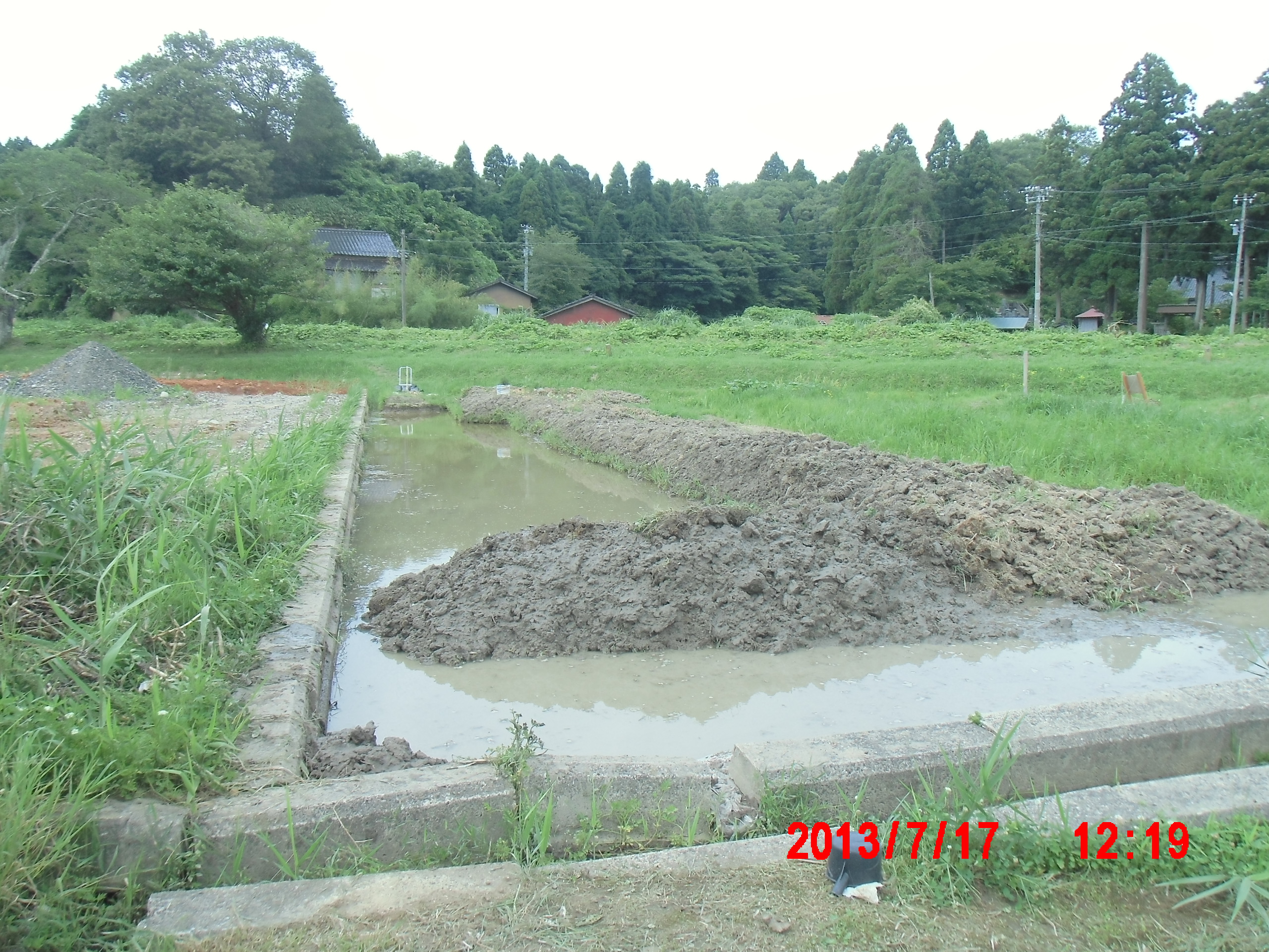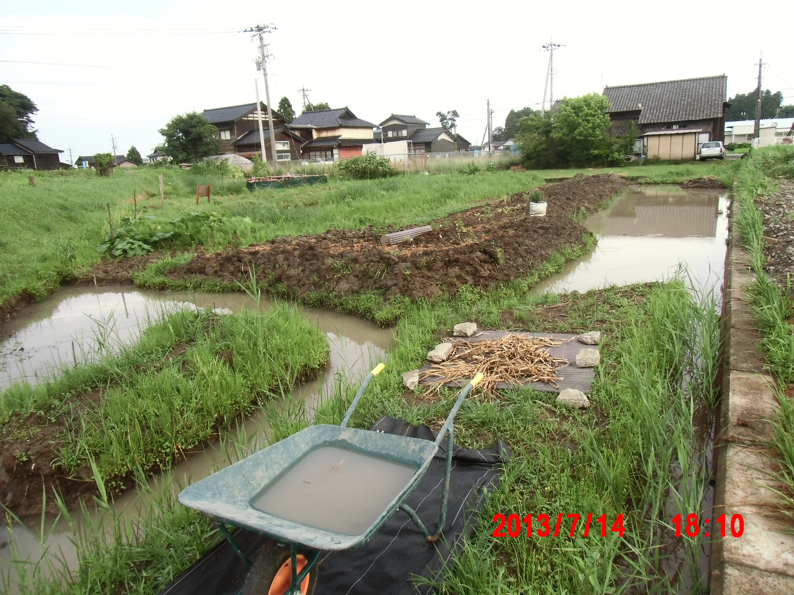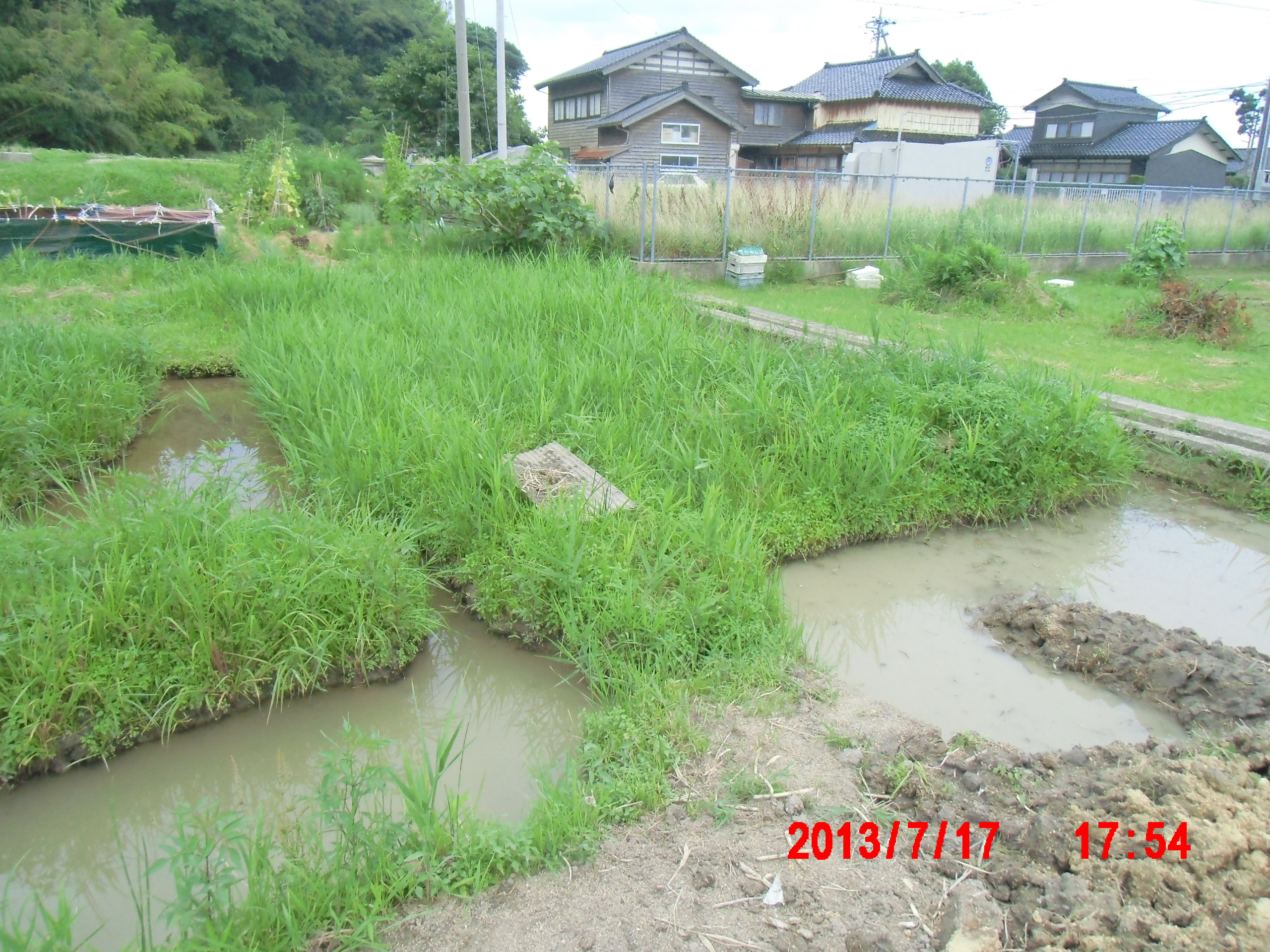 かやの地下茎取りに手こずってますが7月中には終わる見込みです。