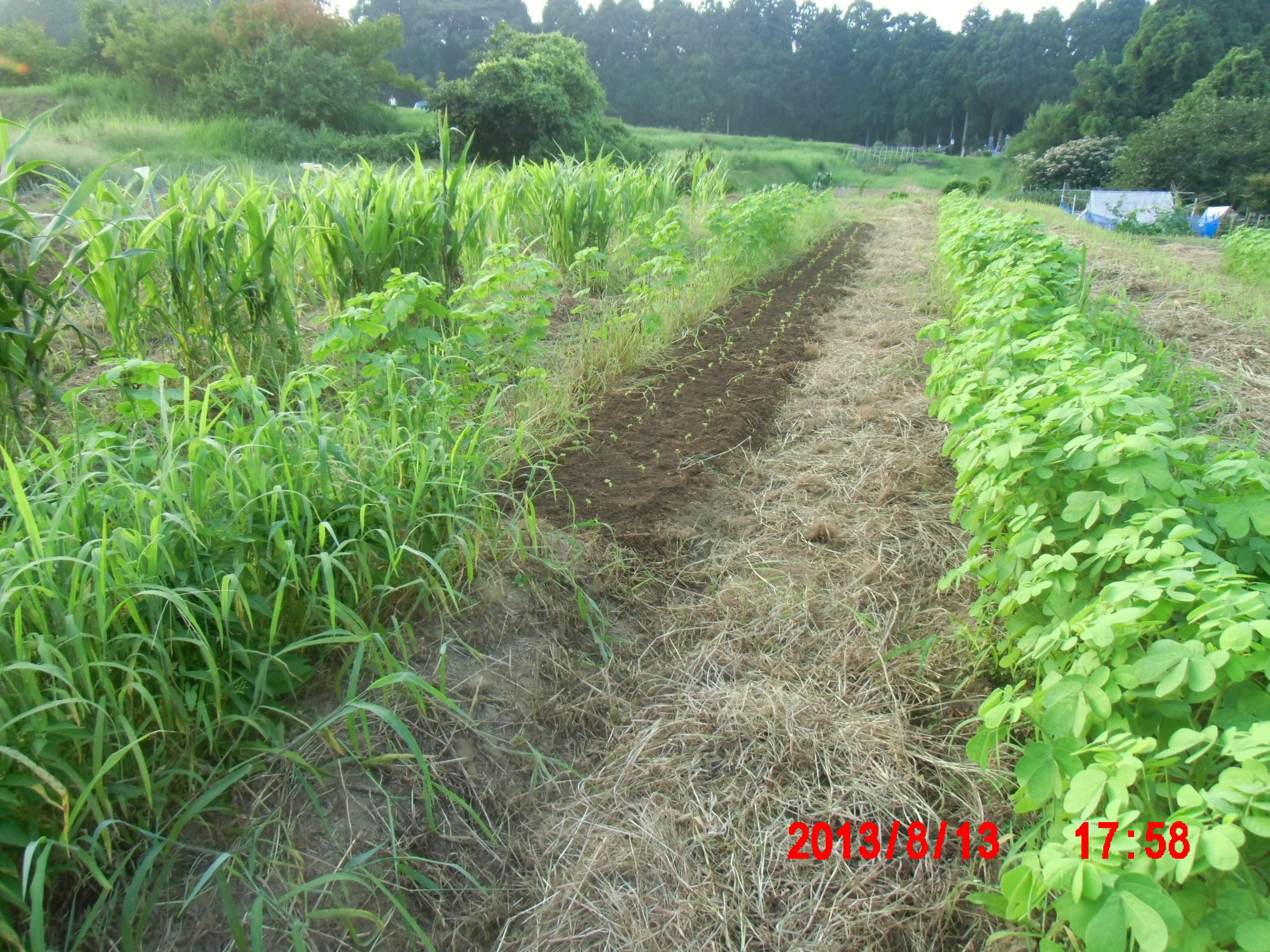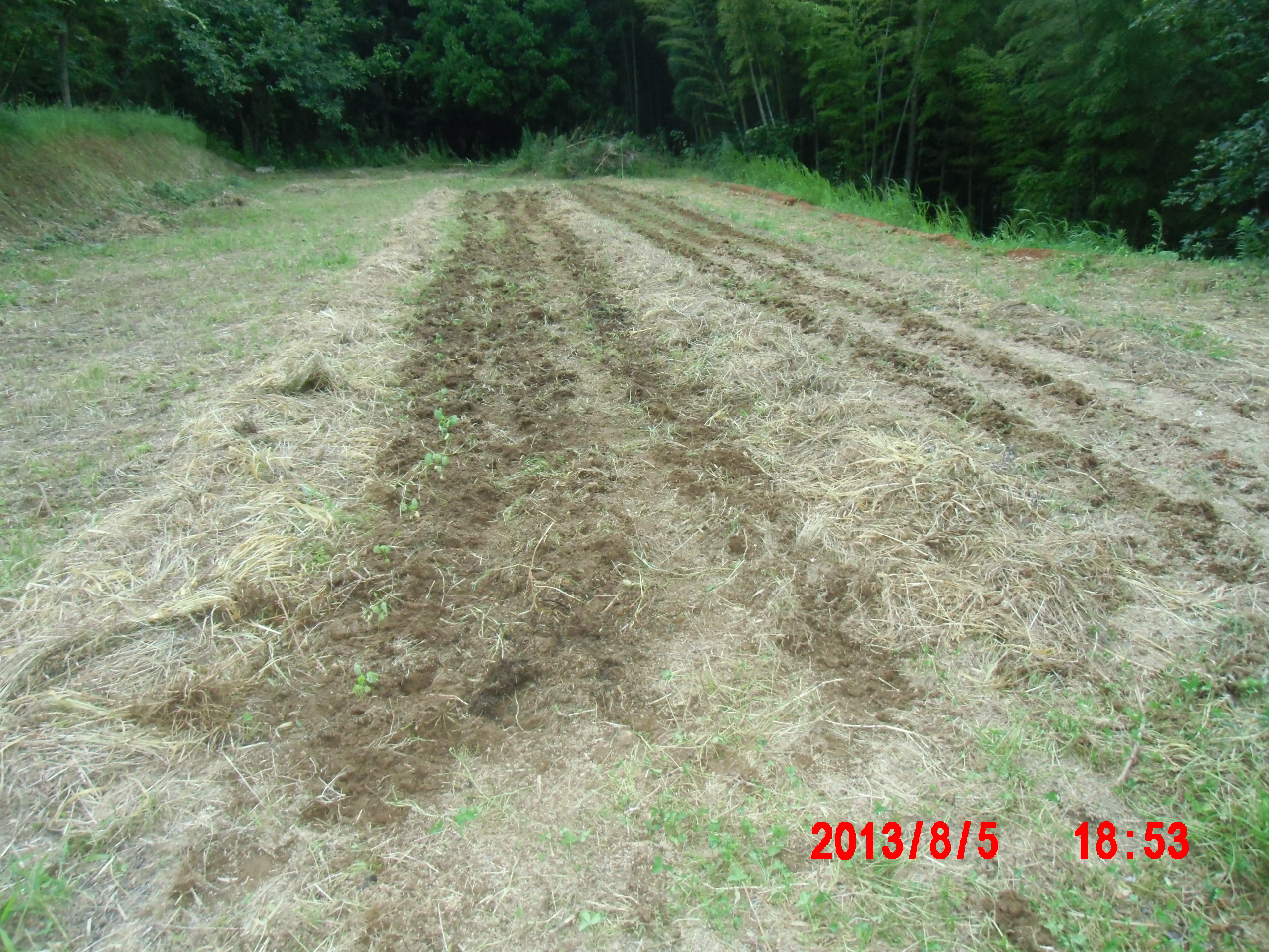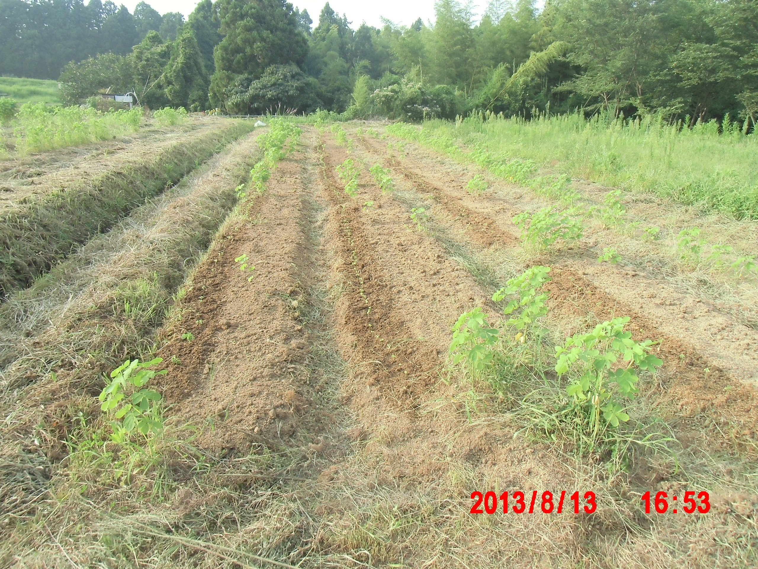 8月5日に200穴セルトレイの13枚分を2号圃場の1番下の場所に定植しました。