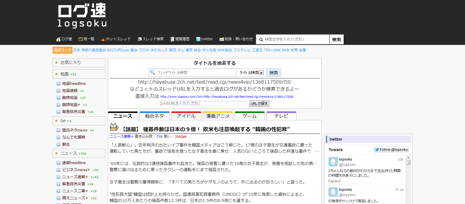 無料で検索できる「ログ速」などのサイトを利用して見ることも出来ます。