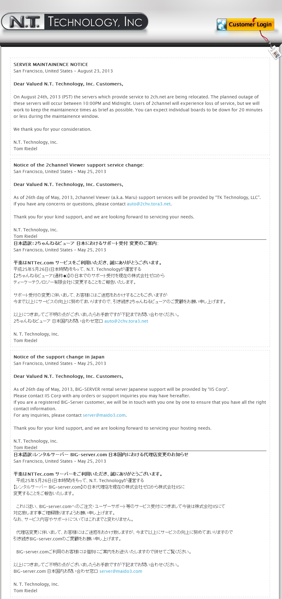8月31日に2ちゃんねるビューアーを運営しているNTテクノロジー社から