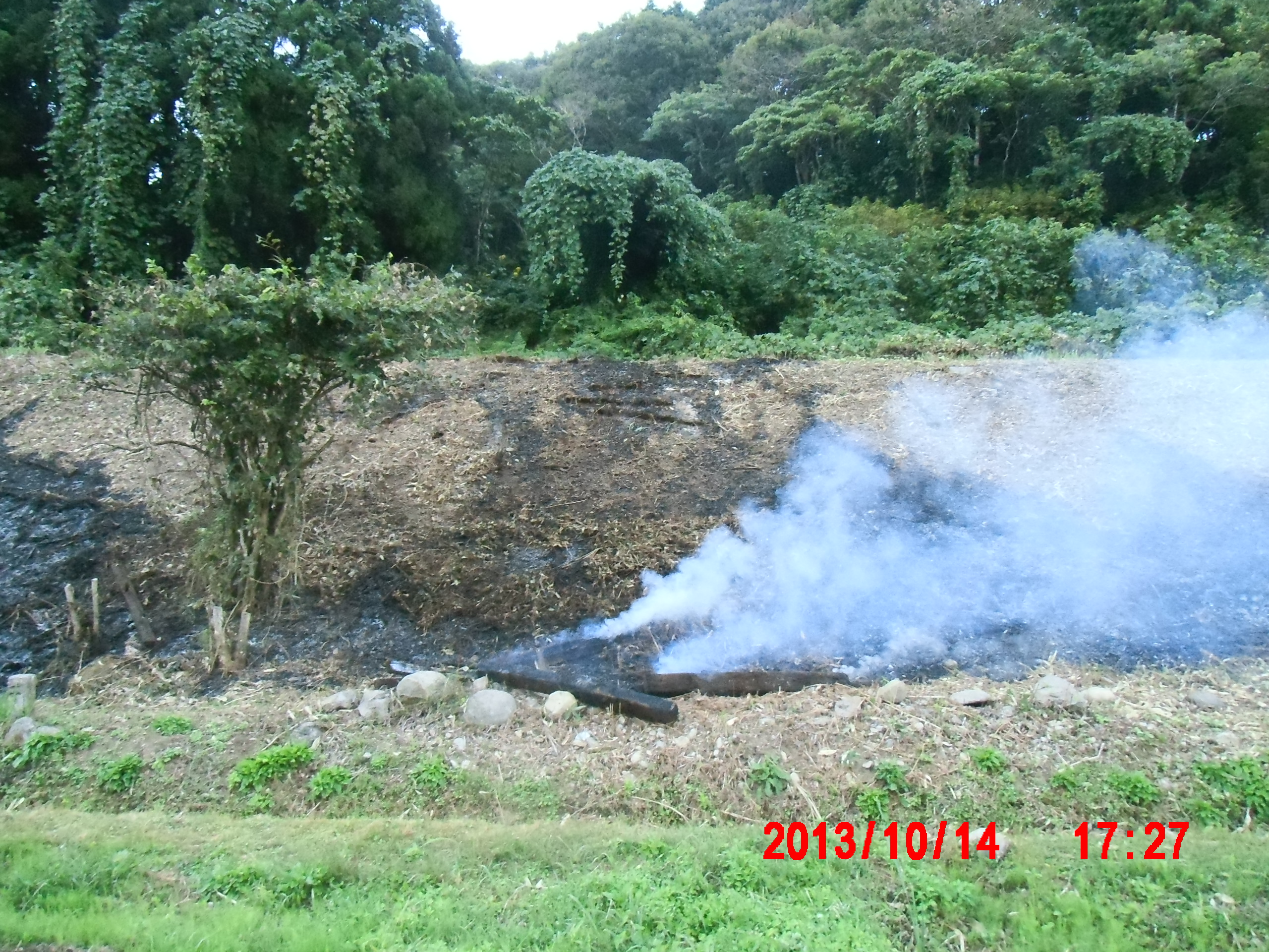 作業の途中に線路下の刈り草を野焼きしてました。
