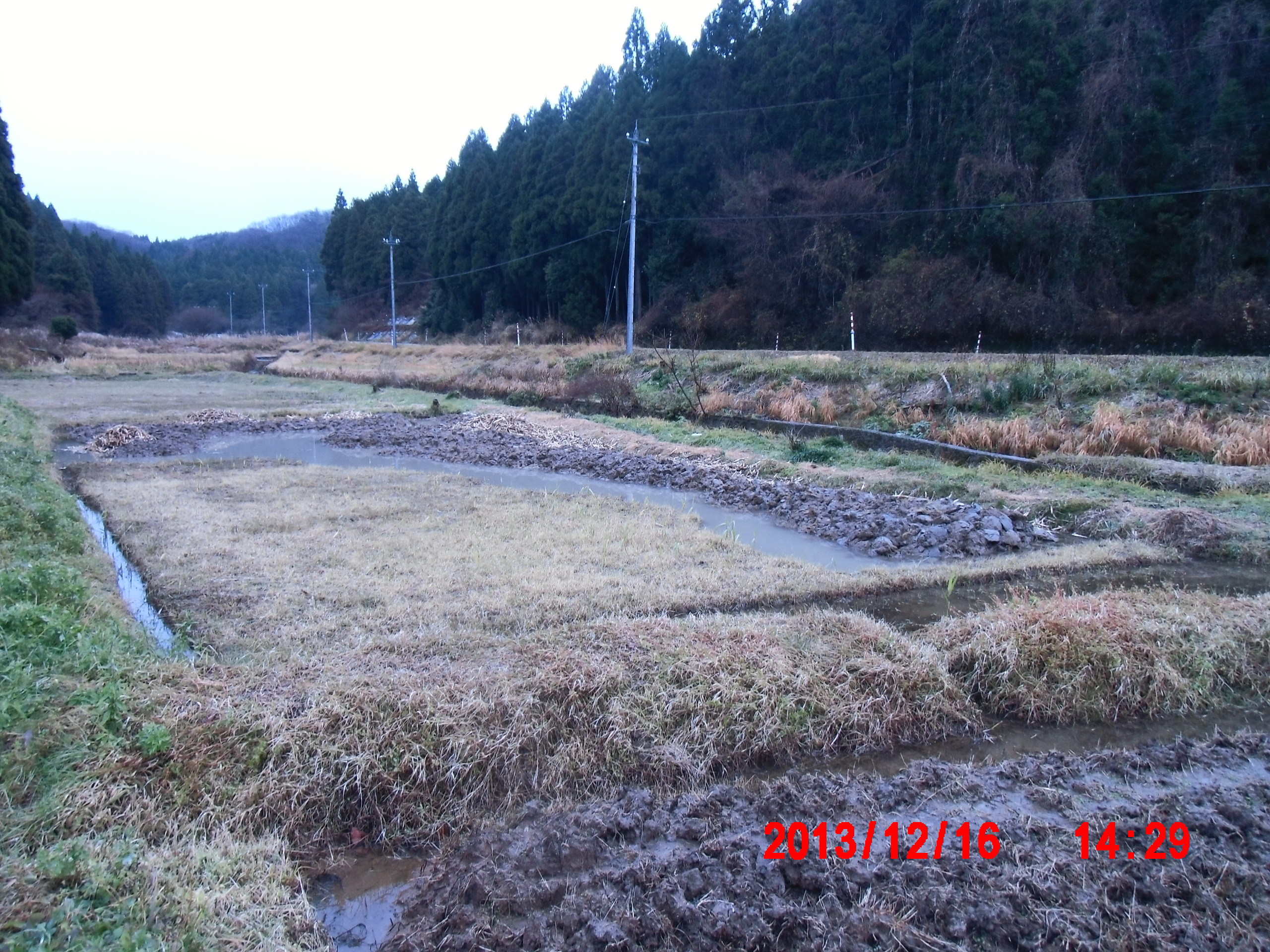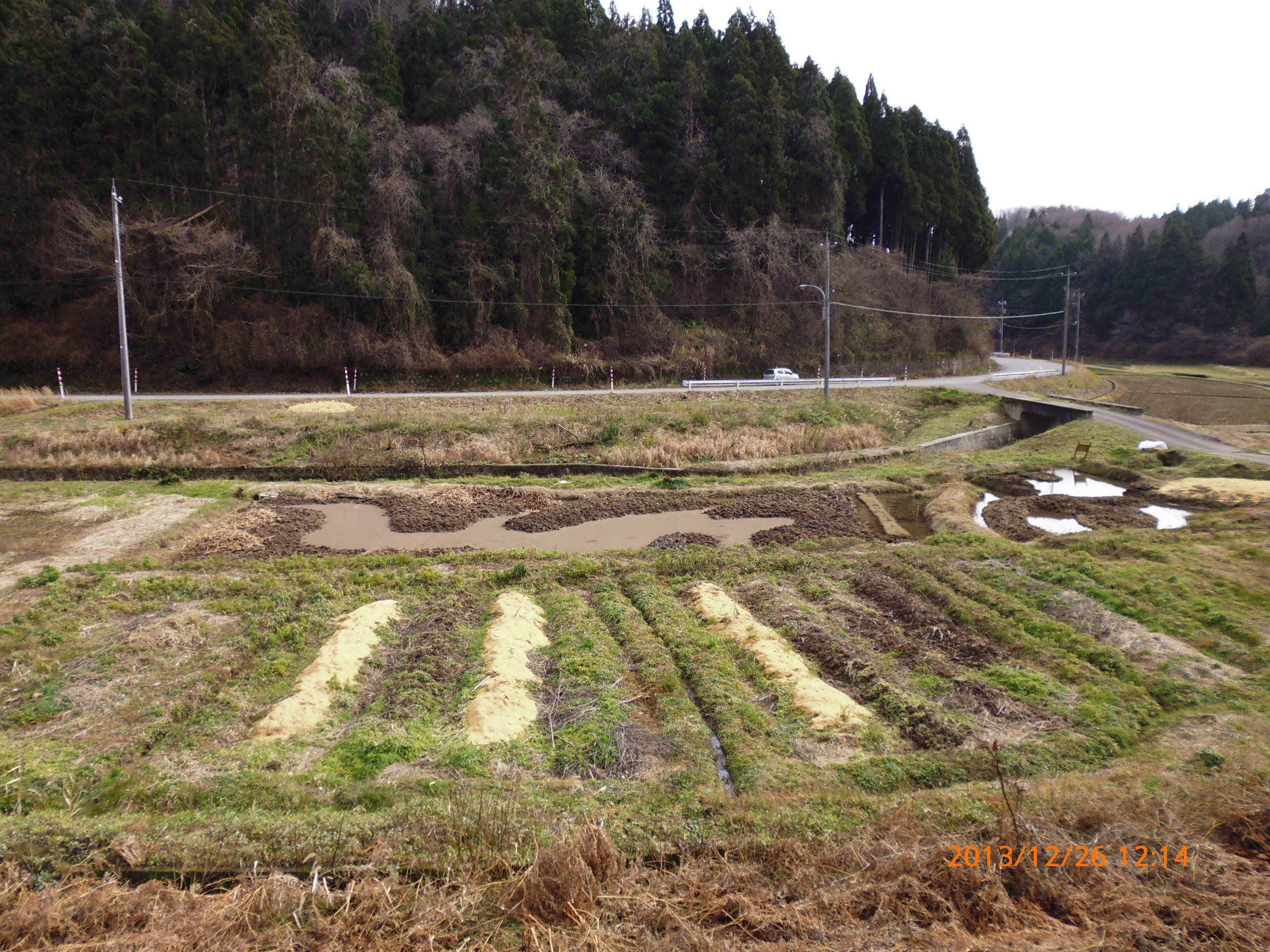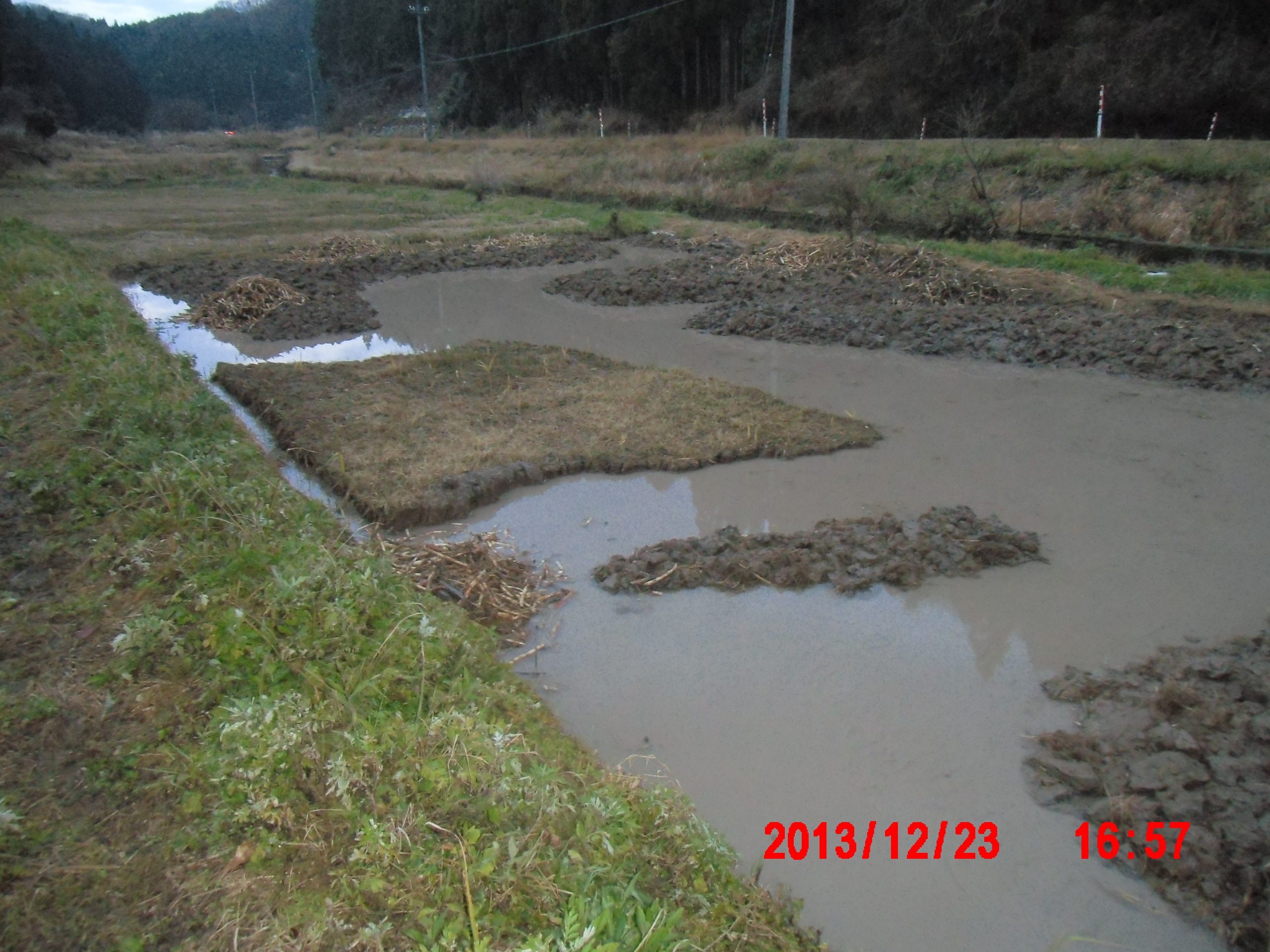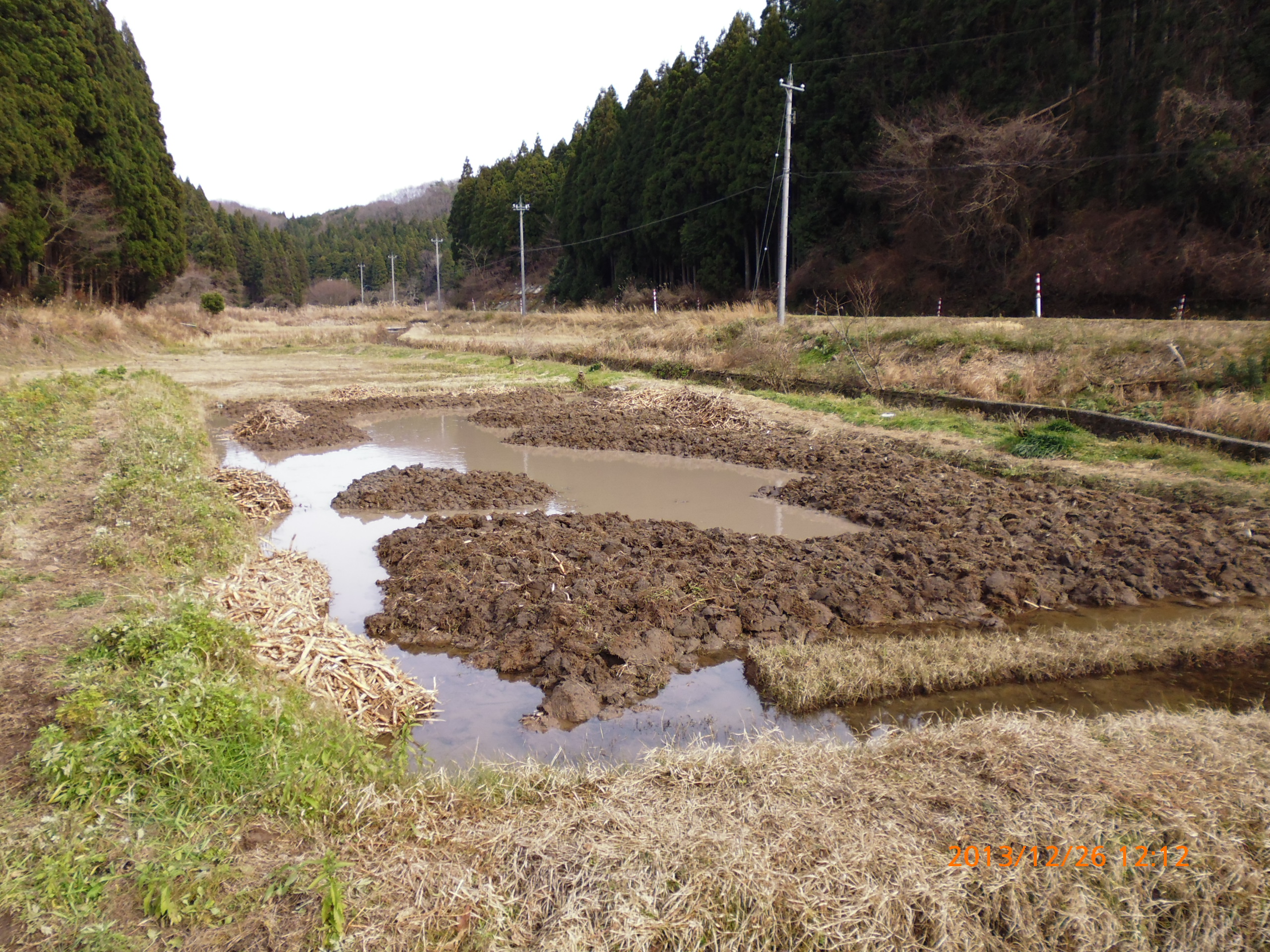 1号圃場の 「かやの地下茎」の除去作業終了 2013-12-26