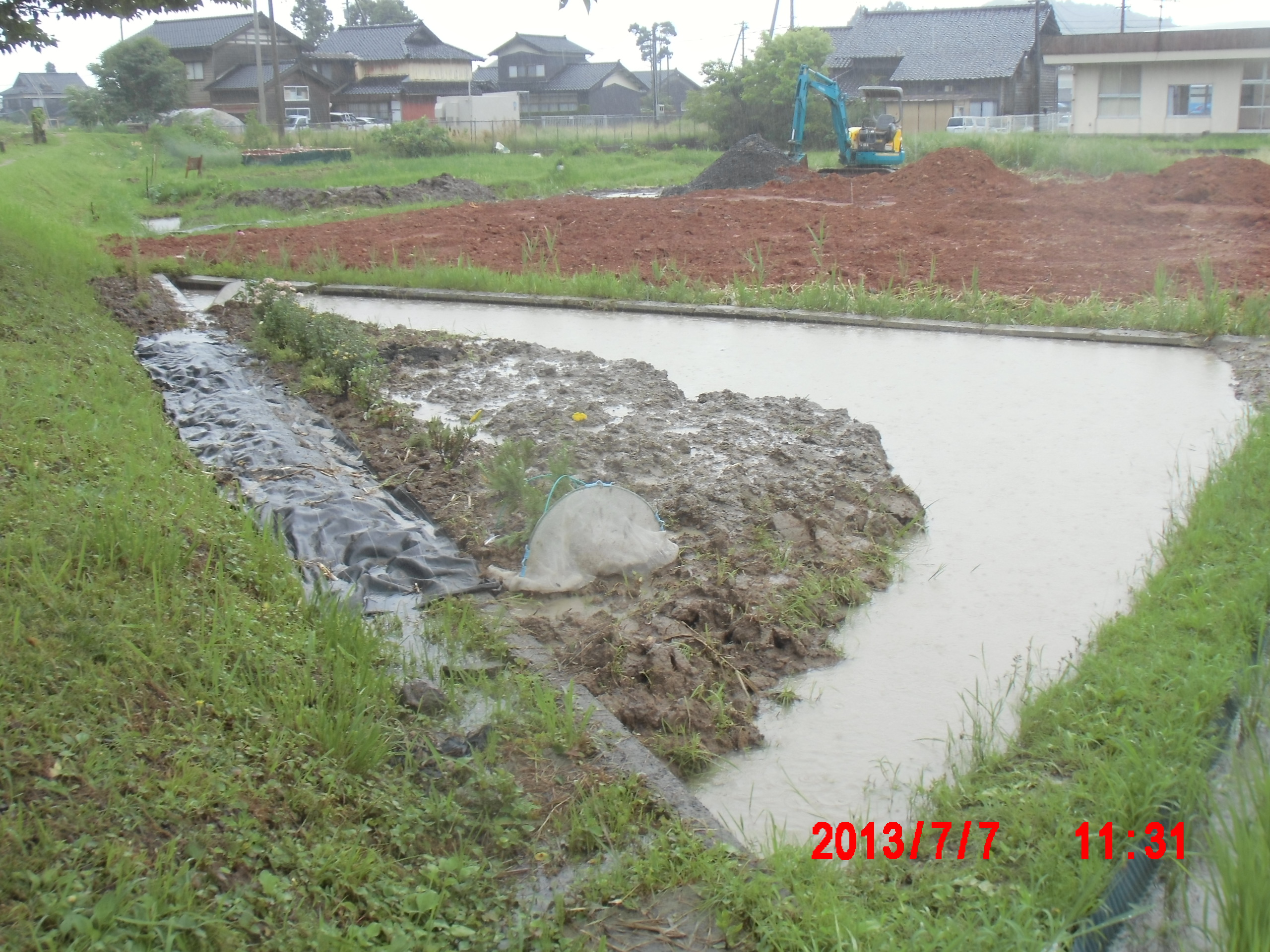 「かやの地下茎」を取り除いて粘土層の土を盛り上げました。