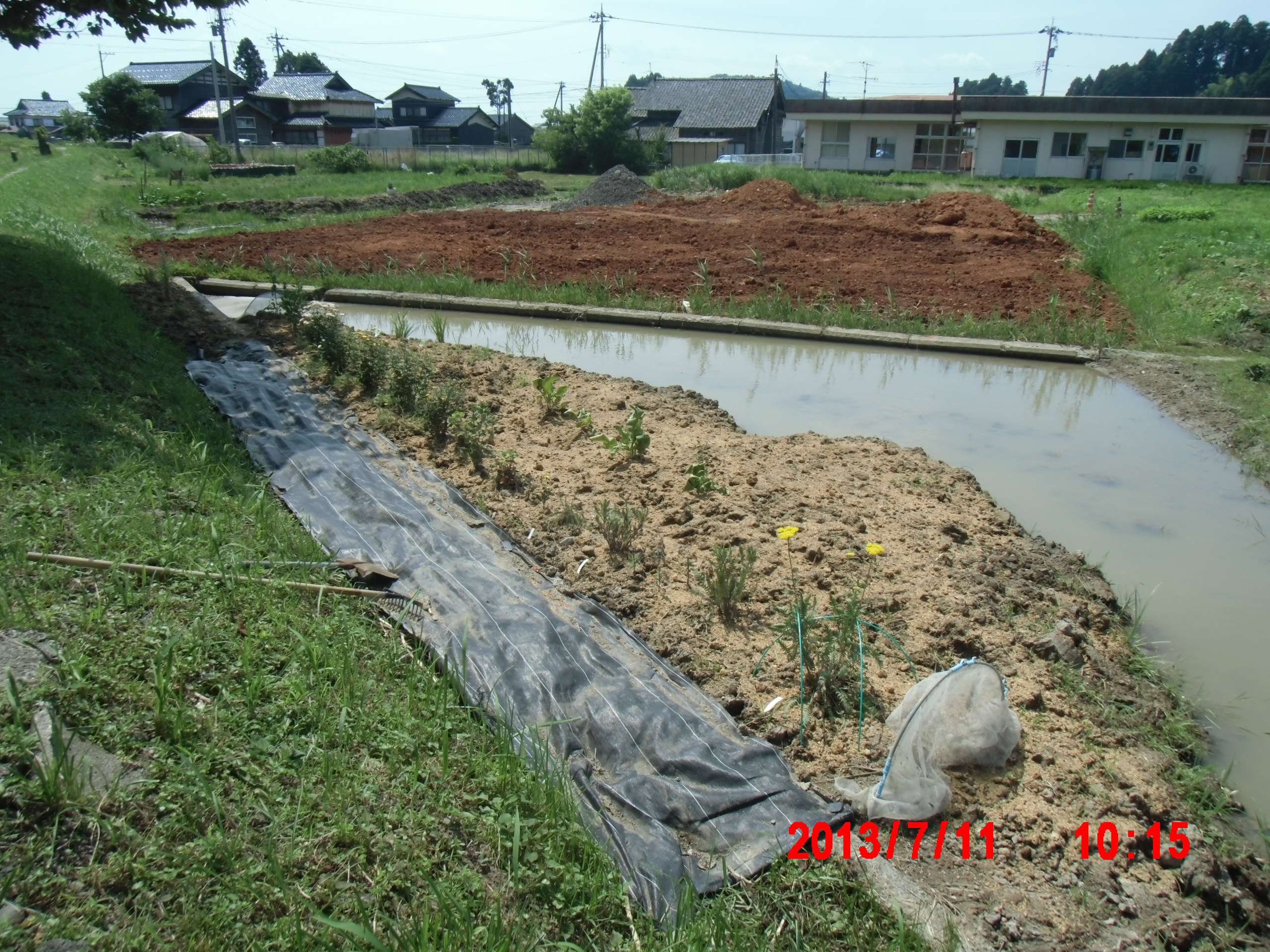 ここは地面を掘らずにそばに排水路を作ったときの土を