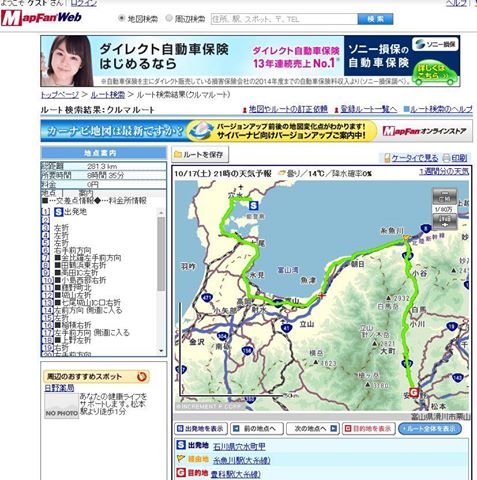 北陸新幹線や能登空港を使えば日帰りでも余裕ですが、今回は道中の秋の景色を見たいのと節約志向で車です。2月3月の雪の時期は通ってますが、以下はネットで簡単に調べた行程表です。最初は今回の安全運転のお守りのSDカードです。