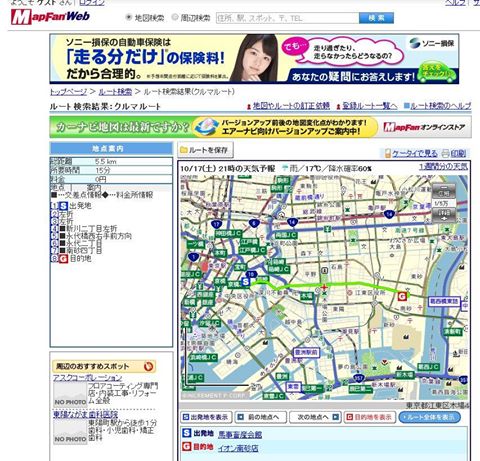 ネットで簡単に調べた東京までの行程表です 2015-10-18