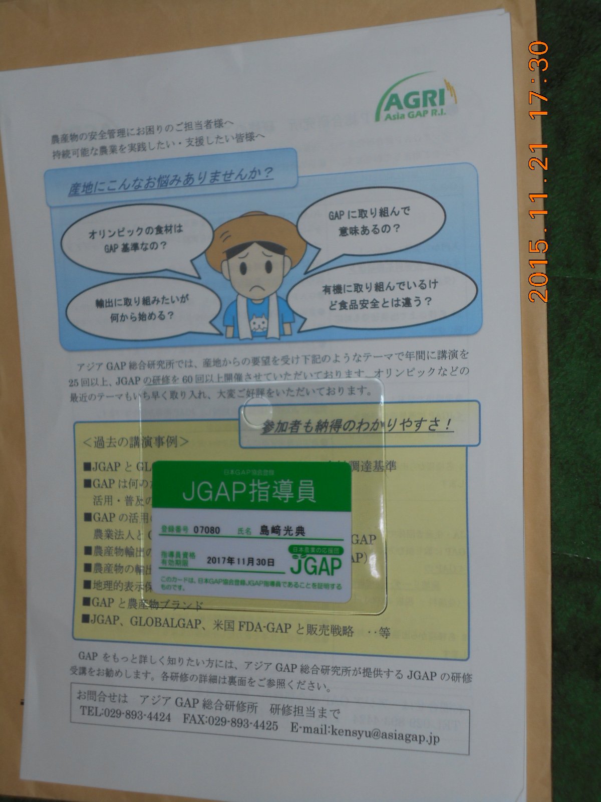 JGAP指導員カードも届きました 2015-11-21