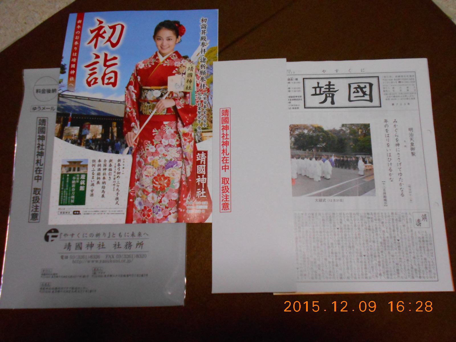 靖国神社から来年の御札が届いたのでそう思いました。