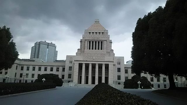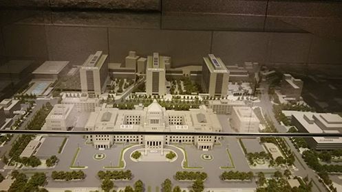 9時から10時まで参議院の中を見学してきました。雨が降りそうな天気です。見学の受付場所は建物の裏側にありました。