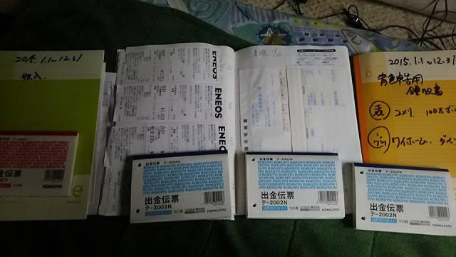 私の場合は、レシートをノートに貼ってから伝票に転記します。それからPCに入力します。勘定科目の設定を間違えなければ、決算書類までこれで出来上がります。それを元に税務署から届いた書類を作成しますが、今まで三回とも記入間違いがあったので、ネット送信は使わないで必ず税務署まで出向きます。税務署まで行くと待ち時間や説明やらで1日つぶれますが、これが一番確実です。