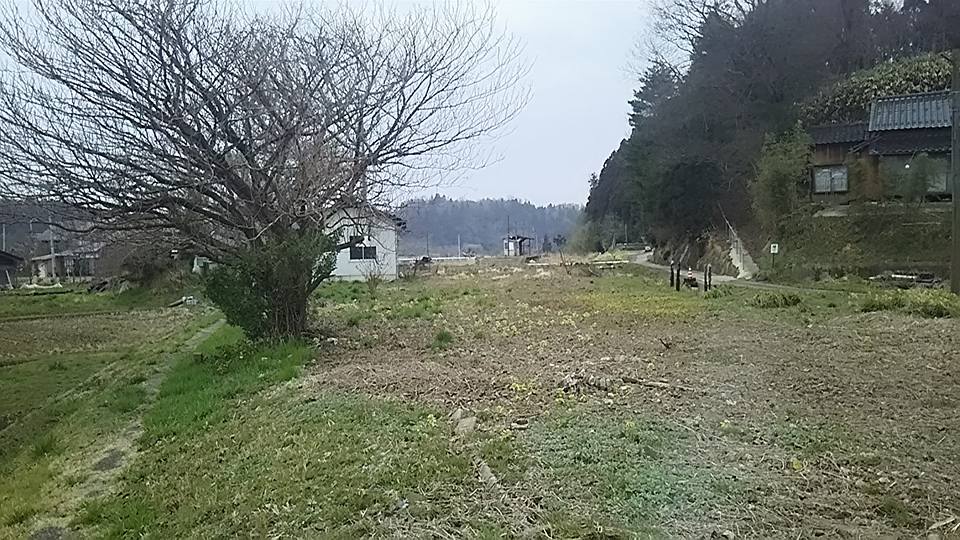 フェイスブックの写真は3枚くらいが見やすい感じですね。写真は現在の甲駅の線路跡です。去年借りたばかりの時は葛の蔓がひどかったので、ひたすら草刈りをしてました。写真の桜は北海道が原産の八重桜だと聞いたことがあります。そのせいか満開になるのは5月になってからです。その頃には桜のそばが緑色のフキ畑になります。手前の線路側は紫色の花のキキョウかな?の絨毯が広がります。左横には野イチゴの群落が広がります。意外と葛の蔓の下でいろんな植物が身を潜めているもんです 。葛を刈り取ったら 姿が見えたので、去年の春に設計しました。さて5月の八重桜の満開に合わせて手入れを始めます。
