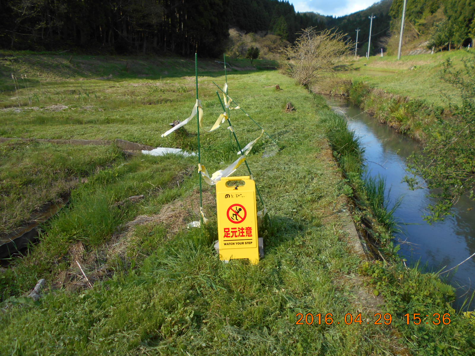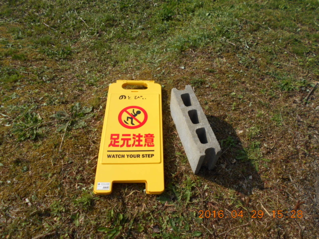 危険場所対策で足元注意の看板設置しました-2016-04-29