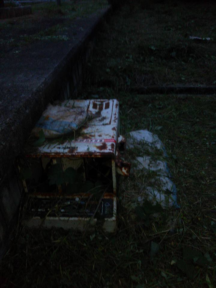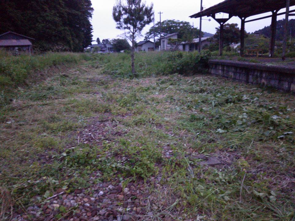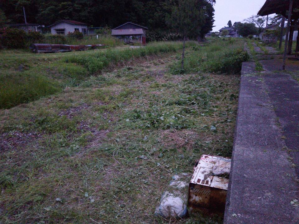 階段代りのものは線路脇に捨ててあったイセキのもみすり精米機です-2016-05-30