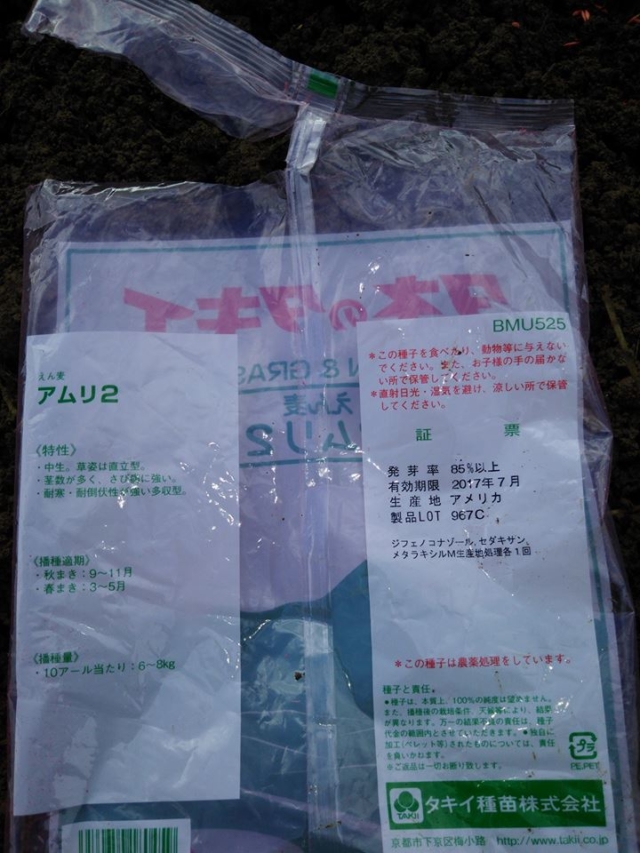今日はえん麦のアムリ2を1kgまきました。生産地アメリカ、lot 967cですね。