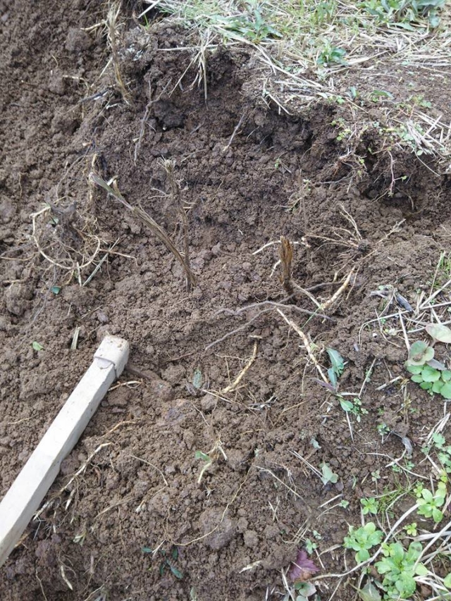 今日は日暮れまで三角ホーで土を起こしてライ小麦のライスターとえん麦のアムリ2を1kgずつ種まき終わらせました。面積は1アールくらいずつですね。ここはカザフ辛味大根の自家採取と野良生えをしていた区画です。
