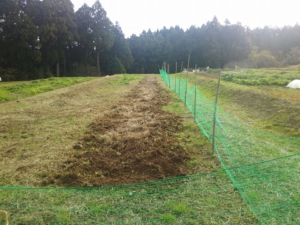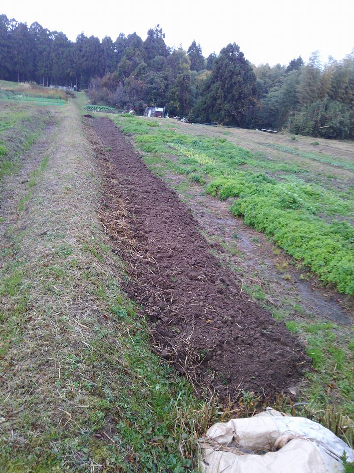 昨日は雨が降ったりやんだりしている中、どうにか30mの畝たて終わらせました。