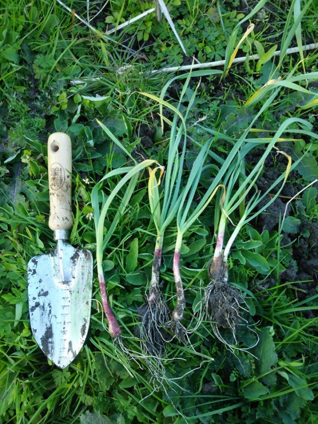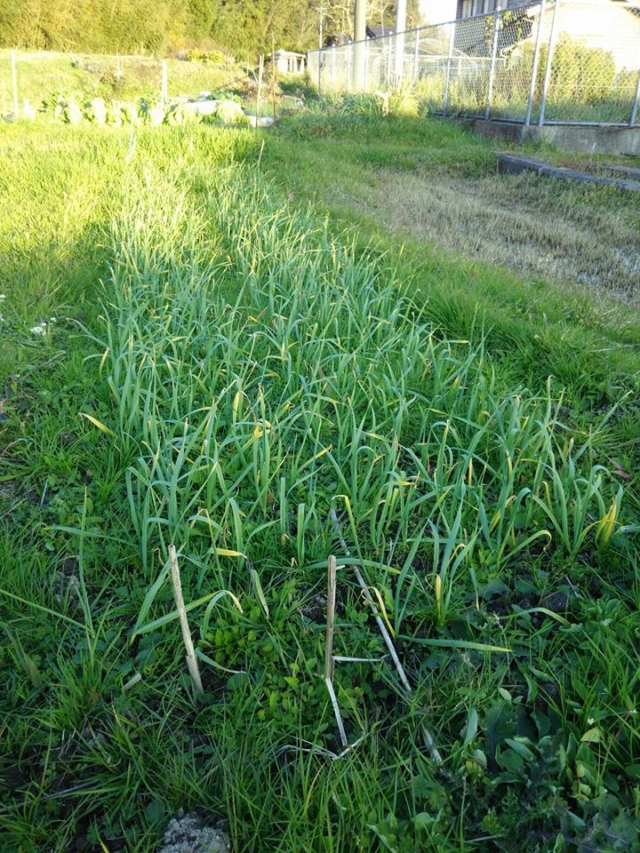 保育所のそばに作付けした葉ニンニクを3セット試し掘りしました-2016-12-03