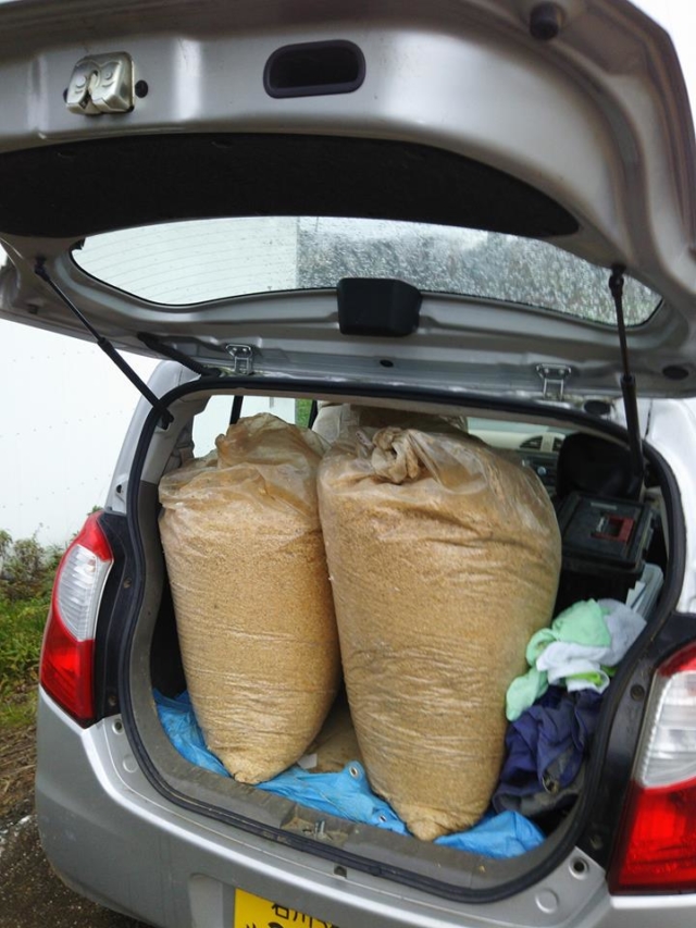雨が止んでから春菊の間引きを終わらせてから、もみ殻をかけてみました。もみ殻マルチといいます。このもみ殻は倉庫に保管してあった3年前のものです。今年は夏場の例の件があったので今年収穫の甲ファームのもみ殻を使うことを自粛してます。1袋約100リットル入りで3袋使ってちょい足りず。残りは明日やりますが今晩は既に寒くなってます。明日朝は霜か小雪でしょうね。