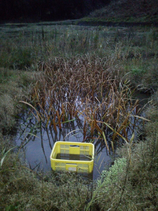 菊芋の駆除方法の実験は収穫かごに入れて沈めるだけという安易な方法です-2016-12-10