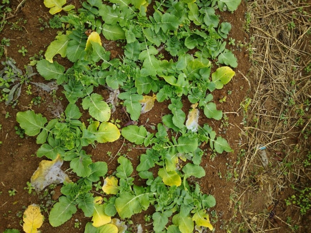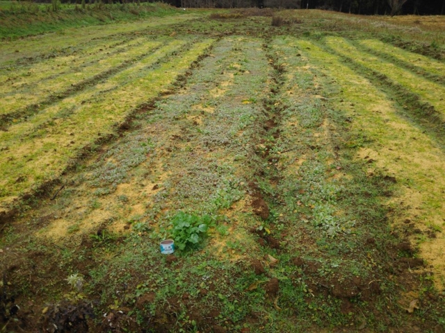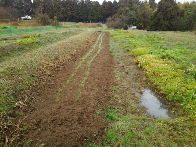 二枚目はえん麦のアムリ2です。三枚目は手前の親田辛味大根だけが市販サイズレベルが数本。他は今の時期だとこれ以上は多分無理ですね。外部から肥料の投入は有機肥料も出来ないので緑肥を育てていますが、効果が出るのは来作以降です。葉ニンニクはここの土壌に合っていたようです。植え付け時期を早めれば問題ありません。