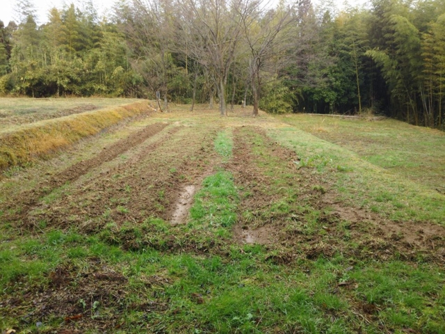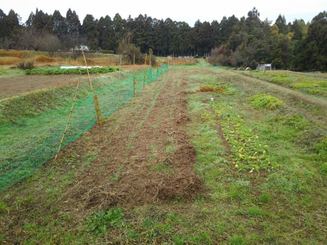 菊芋は取り残すと増えるので、思い切り高畝にしています。