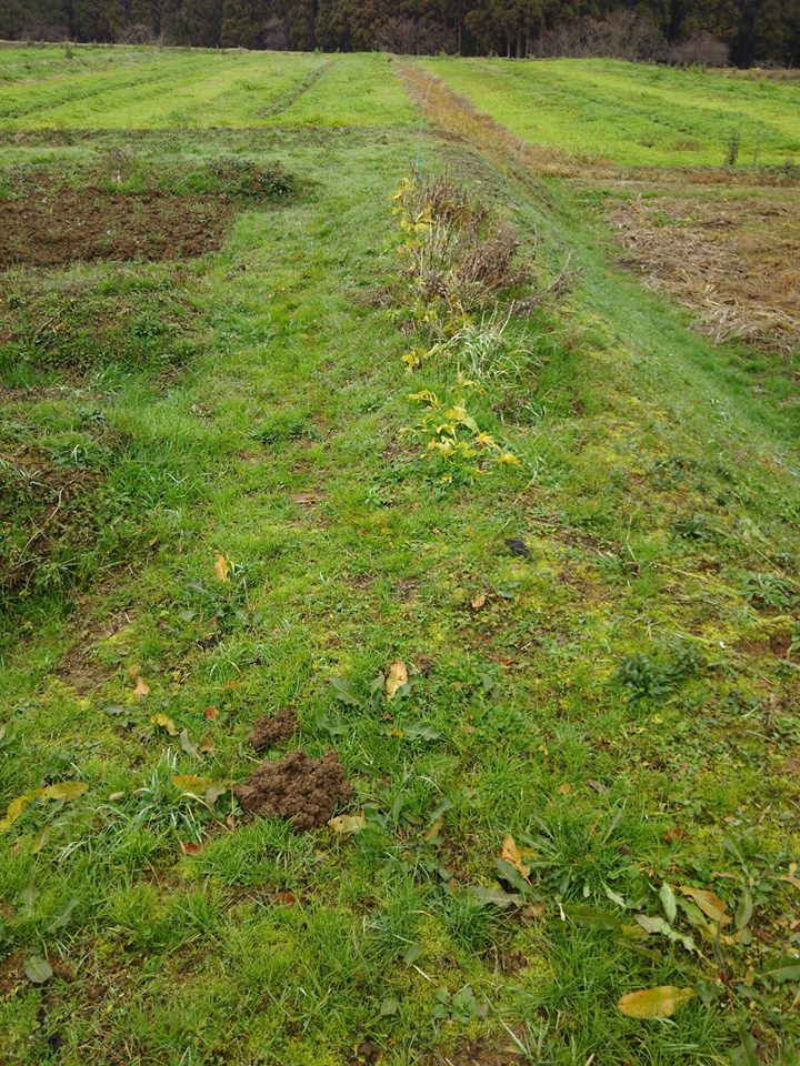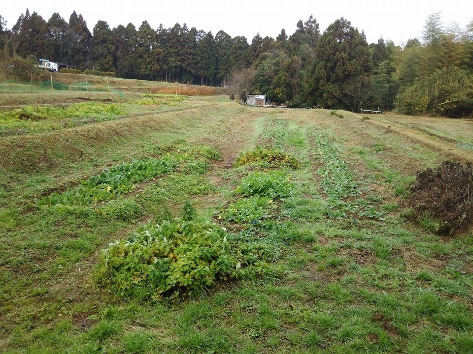 二枚目はえん麦のアムリ2です。三枚目は手前の親田辛味大根だけが市販サイズレベルが数本。他は今の時期だとこれ以上は多分無理ですね。外部から肥料の投入は有機肥料も出来ないので緑肥を育てていますが、効果が出るのは来作以降です。葉ニンニクはここの土壌に合っていたようです。植え付け時期を早めれば問題ありません。