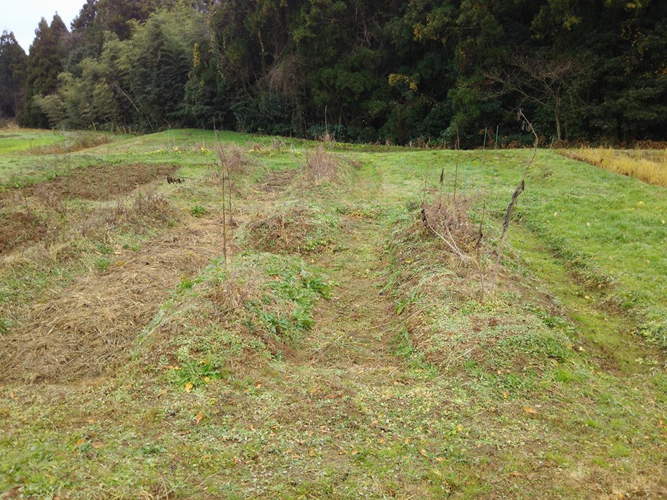 菊芋は取り残すと増えるので、思い切り高畝にしています。