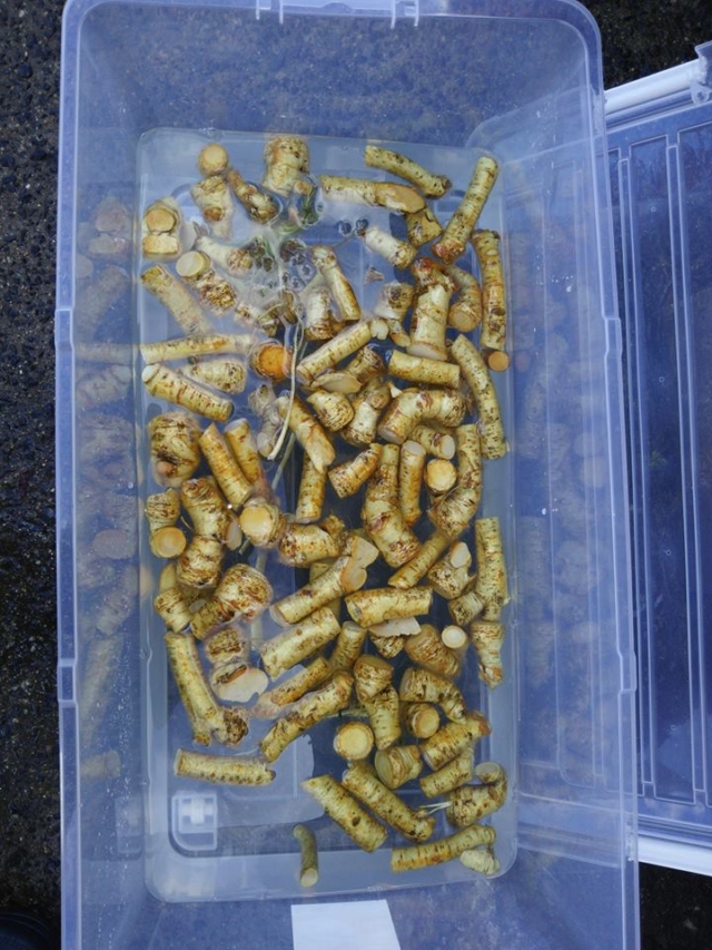昨日の写真ですが、西洋ワサビの苗はまだ水につけたままです。