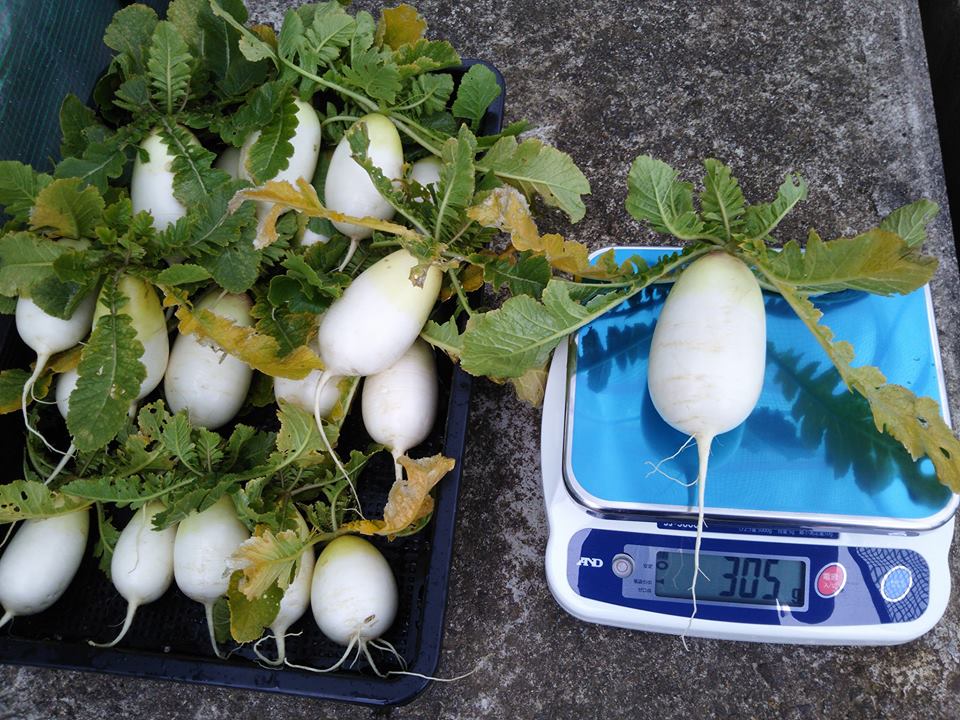 一番大きいもので300gと小粒です。食味の改善から取り組む必要があると感じた辛味大根ですが、金沢中央卸市場に出荷してみます。自分で販売するとなると「辛くない大根おろし」で売った方がいいかもしれません。