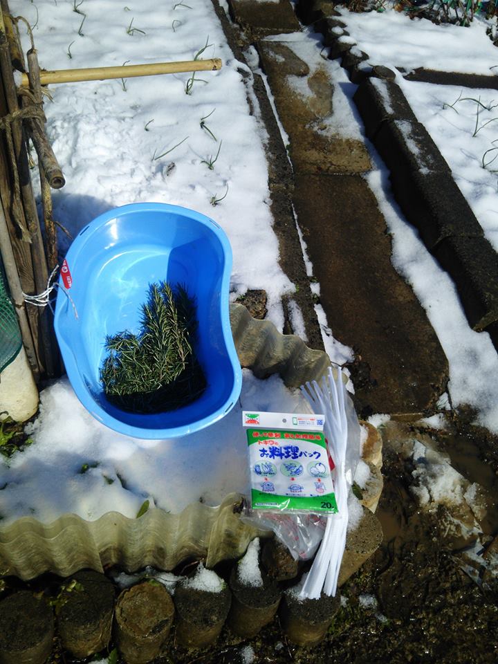 ローズマリーの枝の長さを20cm以内にして下の方を取ったら葉っぱがこれだけ取れました-2017-02-12