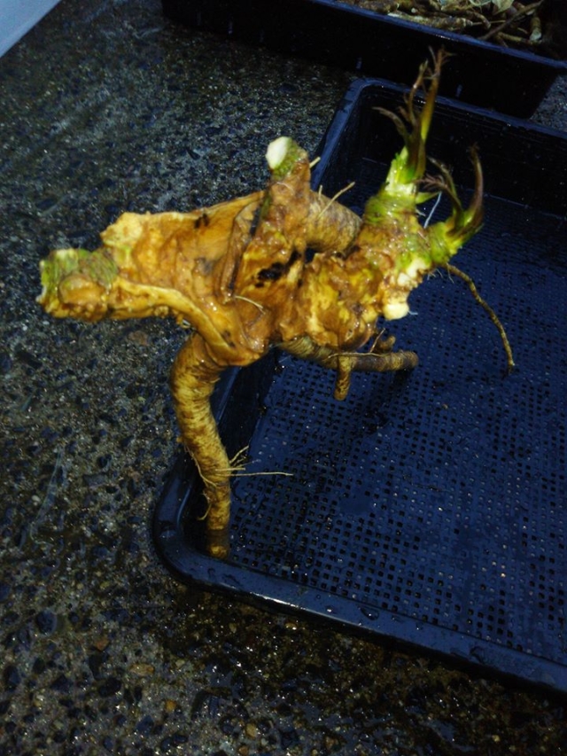 西洋わさびを洗ってみました。根っこが生きてれば頭が裂けてても育つみたいです-2017-02-13
