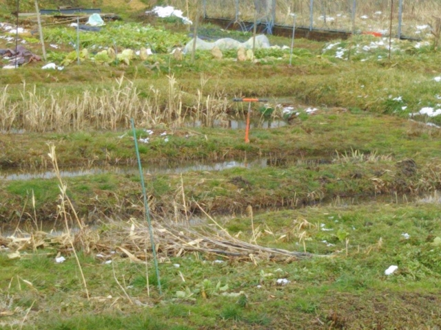朝から雪が降ったり止んだりですが溶けました。一番最初の写真の水辺の植物は「かきつばた」です。ポット苗2株からここまで成長しました。このままでは生育に支障が出るので今年は株分けする予定です。