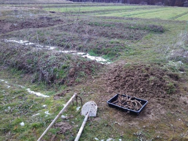 昨日の残りの西洋わさびを埋め込みました。今日5年目を掘り起こしました-2017-02-13