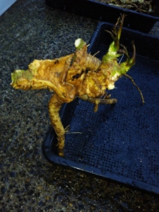 あれからもずっと畑に植えっぱなしでしたが、今日雪の晴れ間に少し掘り起こしました。