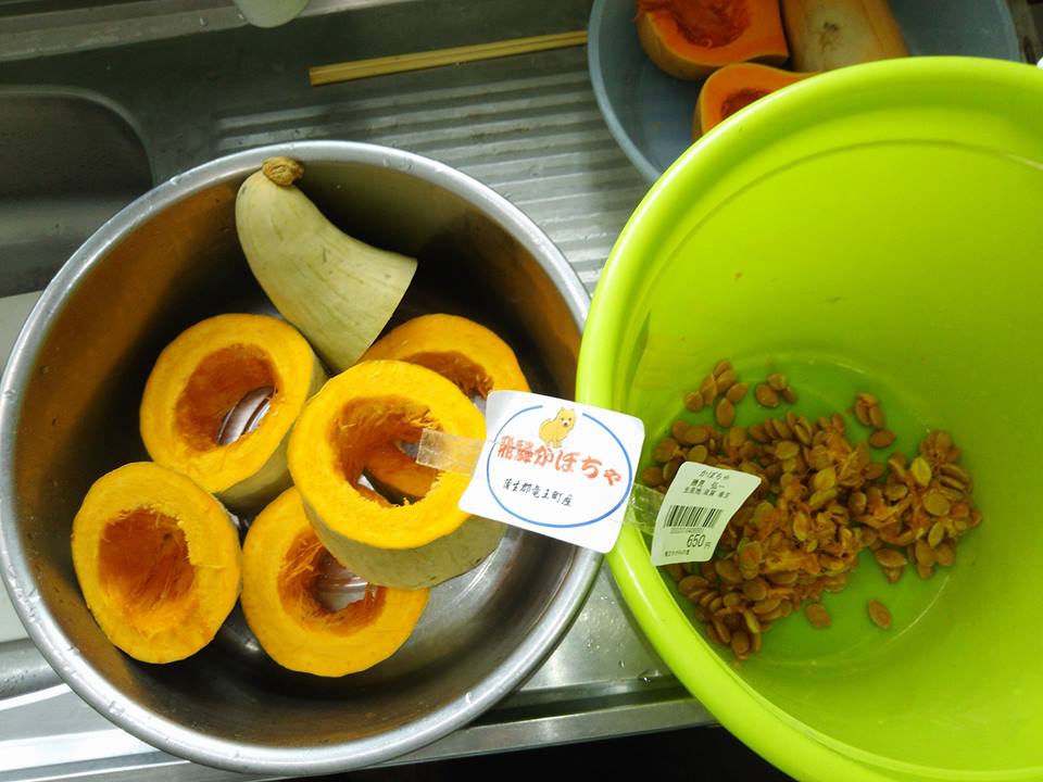 3種類のかぼちゃの種取りをしました