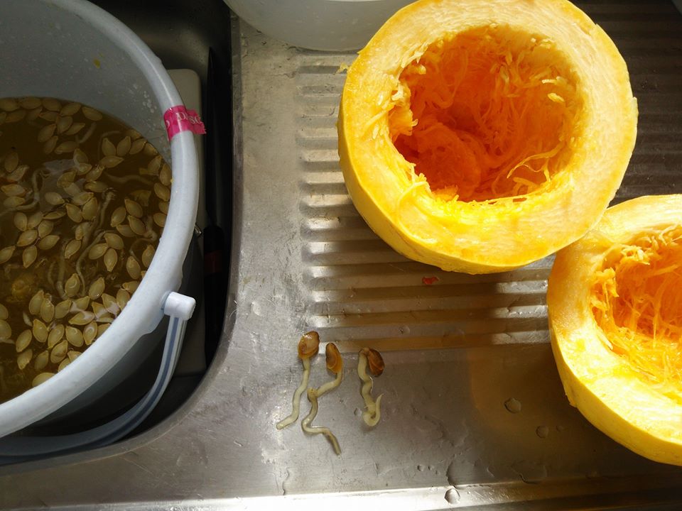 去年の夏に滋賀県竜王町の道の駅で買ってきた3種類のかぼちゃの種取りをしました-2017-02-13