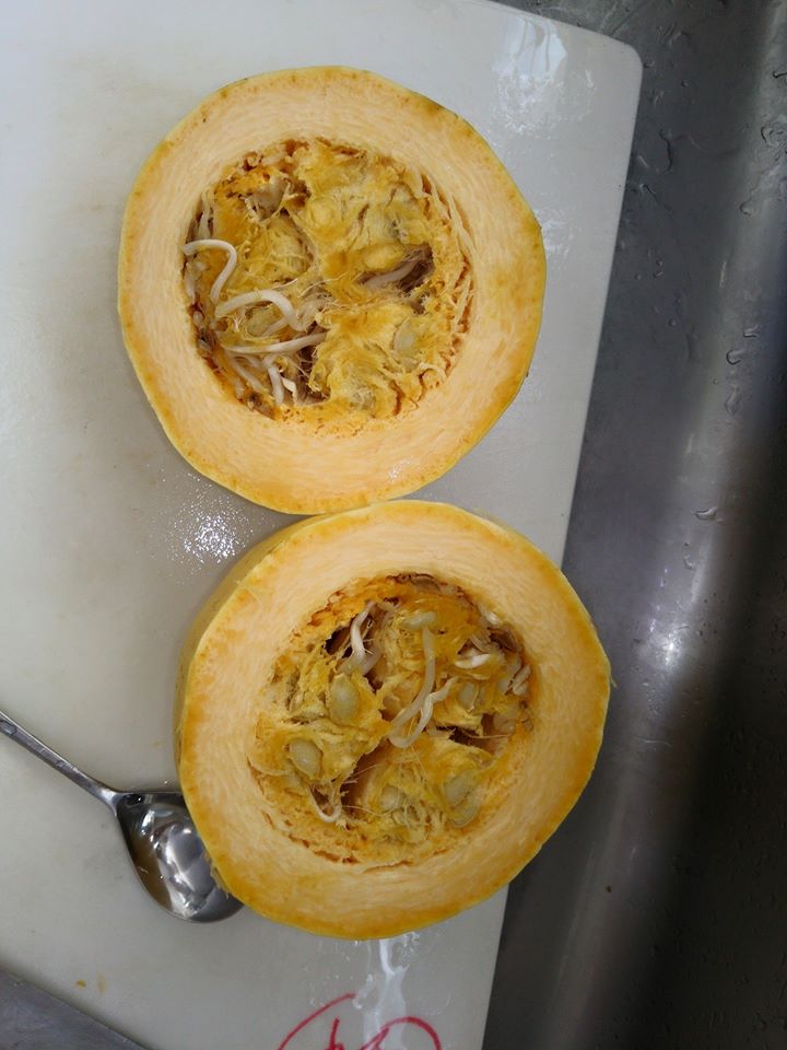 変わったことといえば、そうめんかぼちゃ(金糸瓜)だけが、中でモヤシが出来てました。