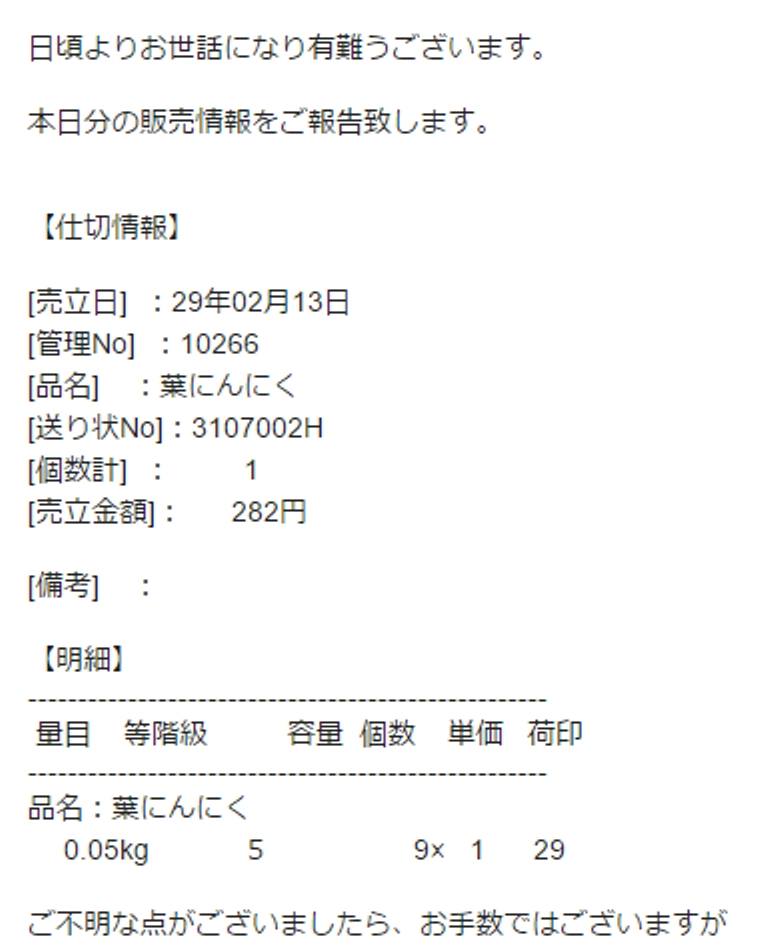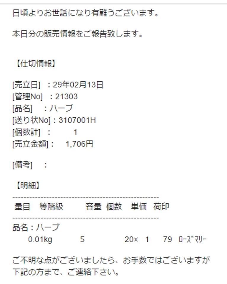 ありがとうございました。本音言うと市場で値段がつく作物を出荷できてほっとしてます。