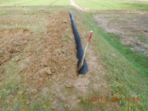 今日のところはシートが風で飛ばないように水の中に入れて終わりました。4m地点に暗きょ1本もみ殻とパイプで構築。法面のすぐ下に掘った排水溝を盛り土をしてずらしました。最初は気づかなかったんですが、それだと草刈りしたら刈った草で溝が埋まってしまって失敗したと思ってました。あと半日で終わらせる予定です。ちなみにすぐ上と横の水田は高尾みそ屋さんの借りている田んぼです。