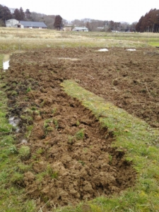 通路の部分ともみ殻くん炭を作っていた場所の半分を掘り起こし。