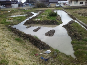 カキツバタの株分けをしやすいように水路作りました-2017-03-24