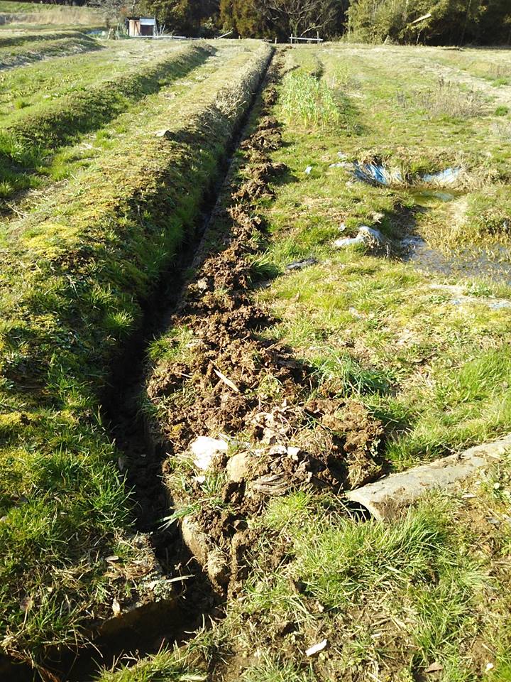 葉ニンニクと辛味大根のほ場の溝掃除-2017-03-25