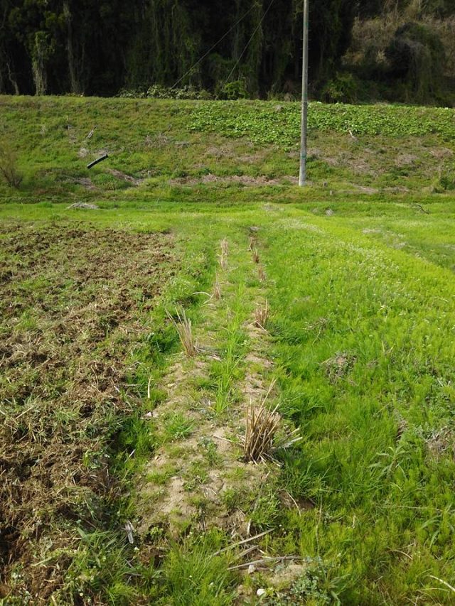 入り江の奥のほ場で耕うんしてます。草を刈ってからするのが本当の作業ですが、日にちがないので省略です。数日前まで雨がかなり降ってたので地面はぬかるんでますが、表面に雑草があるのでどうにか歩けます。矢倉ネギは上手く越冬出来ました。作業の省力化を狙ってネギ溝作らない方法で植え付けしましたが、たぶん問題ないでしょう。味見はしますが今年は親株を増やします。なんせ10株で2000円以上するので、10アール分苗を買うとかとてもじゃないけど赤字で無理です。次は増やす作業です
