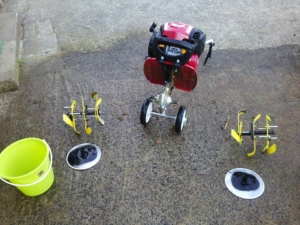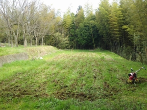今日はここまで。ミニ耕うん機の作業時間、午後1時から5時までで4時間。それで燃料切れです。