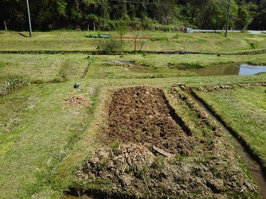昨日掘ったキクイモは移動しました。全部掘り起こしてから土かけます。たくさん収量をあげるための正しいやり方はイモの間隔をちゃんと開けて適正な深さにするらしいですが、栽培だけならこれで大丈夫です。畑地のキクイモの除去方法が確立されていないので、それが分かってから畑地で始めます。水田転作地では水を張れば大丈夫という感触は得られました。