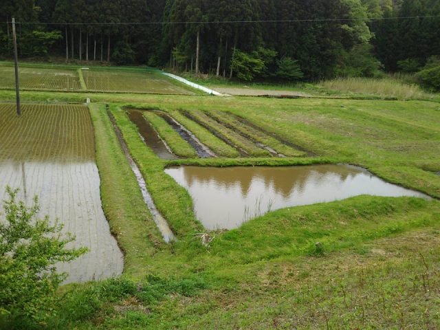 夜勤明け。ほ場の区画の確認で役場行って農地の図面を見せてもらいました。段差だけ見ると四面ですが農地台帳では五枚の田んぼです。五枚の区画に見えるように修正します。