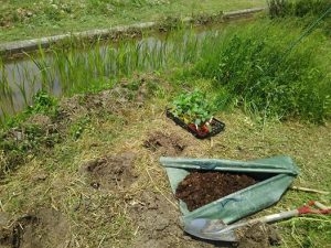夜勤明け。芝桜はダンプに踏まれても花を咲かせるから思ったよりも強かったです。赤と黄色のピーマンの苗の定植であらかじめ水に浸けておきます。元肥は二年前に東井栗園さんからもらってきた栗のイガと落ち葉で作った堆肥です。栗の木が二本立ってますが、これは発芽したものです。でも発芽した栗の場合は実が小さい山栗になるらしいです。今年は実をつけるか見てます。