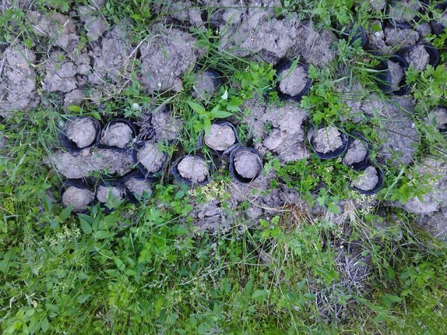 用水路の土手を草刈りしてから下の二枚のアピオス畑を確認しましたが、全面につるが広がってます。ここもネット張ることにします。ポットに入れた方はずっと青天続きで土が乾いてしまって生育不良でした。ポット育苗よりも冬の間にあらかじめ地植えした方が確実だと判断しました。栽培面積は最初の場所と合わせると3アールほどになります。[6月9日追記:ネット張りはやめました]